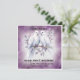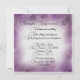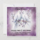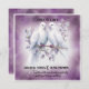 Um belo convite de casamento lésbicas de duas pombas sentadas num ramo de flores. Um quadro branco sobre outro quadro de luz roxa e também no verso com texto e fonte apropriados.