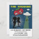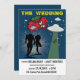 Para fãs do Sci Fi e amantes de horror vintage! Tenha um casamento único com um tema de ficção científica. Os convites contêm discos voadores, raptos de vacas, monstros de tomate mau e um casal (2 mulheres) correndo.