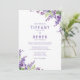 Bonito Casamento Lilac roxo com lindos lilases de cor d'água roxa e ilustração botânica da folha verde. Junto com as palavras das suas famílias sobre este bonito convite para o casamento da primavera.