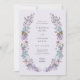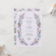 Coloque a palco de um casamento romântico e belamente coordenado com este elegante convite, com uma delicada coroa pintada à mão de lilases aquáticas em tons macios de lavanda, roxo e azul, graciosamente entrelaçados com um verde esmagador. O rico fundo de lavanda melhora o design floral, criando um olhar refinado e sofisticado que se adapta perfeitamente ao primavera e aos casamentos de verão. Personalize todos os detalhes com facilidade — ajuste a redação, os estilos de fonte e os tamanhos para refletir sua história de amor exclusiva. Um convite eterno que capta a essência do romance e define o tom perfeito para seu dia especial.