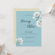 Este maravilhoso design de convite para o casamento apresenta adoráveis botânicos de aquarela em azul pastel, branco e elegantes convites para casamentos florais de lírio, que são perfeitos para qualquer cerimônia elegante e sofisticada. Este floral pintado à mão é ideal para a moda e o casal na moda. Personalize este design com sua mensagem e informações personalizadas. Todas as designs são impressas.