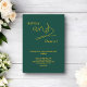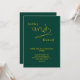 Este convite de casamento verde e dourado é perfeito para um casamento moderno. o design simples apresenta caligrafia dourada elegante em um fundo verde.