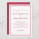 O Convite Elegante e Trendy Wedding apresenta um simples design minimalista contemporâneo com uma dupla borda de quadros em cor vermelha magenta de tendência em um fundo branco nítido. A formulação tradicional proporciona sofisticação eterno mas moderna. Personalize a design de casamento com seus detalhes em letras magenta chic e roteiro. A parte traseira da placa corresponde em vermelho magenta sólido.
