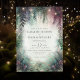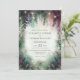 Uma ilustração com uma aquarela esbranquiçada da folhagem esmagadora em verde esmeralda e mauve e roxo, brilhante com luzes de fadas e poeira mágica, decora este convite de casamento outono de verão com um tema de floresta encantado. Um convite elegante e moderno para um casamento de conto de fadas. Perfeito para noivas que amam o cenário florestal de conto de fadas, o tema da floresta de fadas ou do jardim de fadas e esmeralda verde, mauve e ouro.