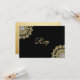 Cartões de resposta de casamento RSVP indianos pretos elegantes, modernos e tradicionais. A cor do fundo pode ser alterada. Lindo desenho de flor Mandala dourada e diamante. Parte de trás tem folha dourada falsa. Modelos editáveis - adicione seu texto. Entre em contato com o designer para outras variações.