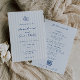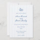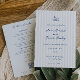 Whimsical manuscrito em francês Blue, convite para o casamento. Modelo, traços feitos à mão anéis de casamento rabisco, fundo de listras azul-claro e detalhes modelo no verso.