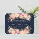 Design de cartão único e elegante, com rosas e peônias pintadas cor-de-rosa, pinceladas em um fundo azul de marinho rico (você pode alterá-lo, mas precisa mudar a cor do texto para ajustado o plano de fundo escolhido. Na parte de trás, uma bela buquê. Use a ferramenta Personalizar para adicionar suas informações, alterar fontes, cores. Visite, por favor, minha Coleção Floral de Blush Moderno, para ver os itens correspondentes.