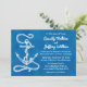 Faça o tom divertido do seu casamento com este convite de casamento para âncora de navio branco e azul marinho. Este convite náutico apresenta uma âncora branca desenhada à mão com uma corda de marinheiro destacada contra um fundo azul de cor aquática que lembra o oceano. Seus detalhes de casamento são impressos em letras brancas e fontes fáceis de ler. Os convites para âncoras de navios são perfeitos para praia, marinheiro, verão e casamentos náuticos. ROLE PARA BAIXO PARA EXIBIR OS PRODUTOS ANCOR CORRESPONDENTES