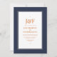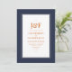 Convite moderno de casamento simplista em sotaques de azul marinho escuro, laranja queimado e champanhe personalizável para seus detalhes de evento.
