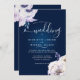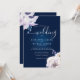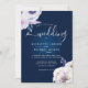 Esta linda suíte floral de casamento apresenta rosas cor-de-rosa macio e lilás contra um dramático fundo azul marinho. O roteiro romântico de caligrafia é complementado por uma fonte moderna e limpa que destaca seus detalhes de casamento. Perfeito para um casamento de primavera ou verão. Edite facilmente o modelo com seus detalhes.