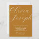 Celebre o seu dia com este convite minimalista de casamento marrom-mostarda, com um roteiro elegante de caligrafia num pano de fundo quente e sujo. O inverso inclui espaço para uma foto pessoal e um código QR para conectar convidados ao seu site de casamento ou RSVP. Perfeito para os casamentos rústicos, de outono, boho, ou modernos, este design versátil traz profundidade e calor. O tom rico, também conhecido como amarelo ou âmbar ouro, evoca elegância sazonal natural. Disponível nos formatos de download impresso e digital.
