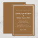 Convite de Casamento elegante e moderno apresenta um design contemporâneo minimalista simples com uma borda de moldura dupla em branco sobre um fundo marrom rústico moderno. A redação tradicional fornece sofisticação moderna e atemporal. Personalize o design do casamento com seus detalhes em letras brancas nítidas e caligrafia. O verso do cartão combina com o marrom.