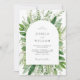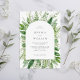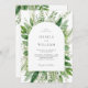 Convite de casamento moderno minimalista, com design simples, caligrafia elegante e design botânica de cor aquática boho verde.