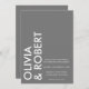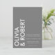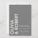 Um simples convite de casamento moderno com nomes ousados de tipografia, cor de cinza e design minimalista.