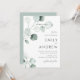 Convite de casamento do tema Greenery. Convide a família e amigos com este boho e convite minimalista ao casamento. Apresenta ilustrações aquarelas de folhas de eucalipto verde poeirentas e de escrita caprírica. Personalize adicionando nomes, data, hora, local e outros detalhes do evento. Este eucalipto é perfeito para primavera e casamentos no inverno.