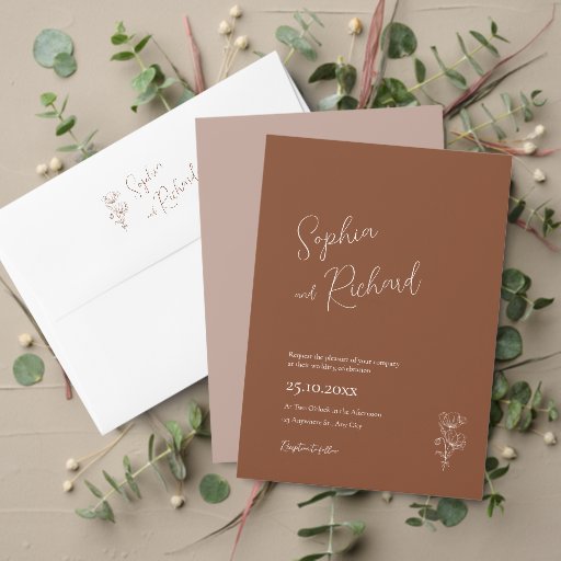 Convites Casamento Minimalista de Terracotta Boho Botanical