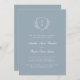 Convocação de Casamento Minimalista Dusty Blue. Este elegante convite de casamento mostra uma crista branca de folhas com a noiva e o monograma do noivo num fundo azul empoeirado. O texto é branco e o verso do convite é azul empoeirado. Esta é parte da coleção Mínima Crest & Leaves.