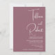 Elevem a sua papelaria de casamento com o Convite de Casamento Minimalista Dusty Pink. Apresentando um fundo cor-de-rosa suave e empoeirado com elegante texto branco, este convite mostra os nomes dos casais, a data do casamento e o local na frente de um design limpo e moderno. O verso fornece detalhes adicionais de casamento, garantindo que os convidados tenham tudo o que precisam em um formato de na moda e organizado. Perfeito para casamentos românticos, boho ou modernos, este convite adiciona um toque de sofisticação e calor ao seu dia especial.