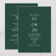 Um design moderno minimalista apresentando sua data especial e detalhes do casamento em tipografia clássica e sofisticada em um fundo verde esmeralda. Com todas as informações do seu dia de casamento no verso, incluindo seu RSVP, acomodação e detalhes adicionais. Projetado por Thisisnotme