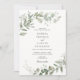 Convite de casamento com um quadro de aquarela eucalipto e verde. Personalize com suas informações para os recém-casados. Clique em "clicar para personalizar mais" para alterar o estilo, o tamanho ou a cor da fonte.