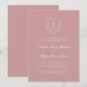 Convite De Casamento Minimalista Rosa. Este elegante convite para o casamento mostra uma crista branca de folhas com a noiva e o monograma do noivo num fundo de rosa empoeirado. O texto é branco e o verso do convite é rosa empoeirado. Esta é parte da coleção Mínima Crest & Leaves.