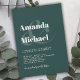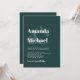 Projete um senso de simplicidade moderna com este simples convite para casamento design na popular escolha de cores - eserald green com texto de luz. Os nomes da noiva e do noivo são apresentados em tons de negrito com um grande na moda e juntando-se aos seus nomes. Este texto contemporâneo é acompanhado de uma simples carta, com os pormenores do seu dia especial. O resultado é um olhar minimalista saboroso com talento moderno e foco na noiva e no noivo e seu esquema de cores escolhido. Personalize o texto com seus detalhes no modelo de texto fácil de usar.