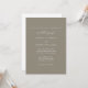 A Elegance encontra-se com o design eterno com este Convite de Casamento Mínimo Clássico Neutro. Com um layout limpo e sofisticado e tons neutros suaves, este convite é perfeito para casais modernos que apreciam simplicidade e estilo. Quer você esteja planejando uma comemoração da cidade chic, uma cerimônia íntima de jardim, ou um casamento de destino, este versátil ajustado de design sem falhas em qualquer tema. Personalize facilmente com seus nomes e detalhes do casamento para criar um convite que é exclusivo seu.