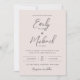 Nosso clássico design de convite de casamento cor-de-rosa é um estilo perfeito para seu casamento minimalista. Um belo emparelhamento de fontes de caligrafia de cinza suave com texto clássico simples sobre um delicado fundo rosa, faz um olhar elevado para complementar a celebração da na moda. Fácil e rápido personalizar-se com seus próprios nomes e detalhes de casamento.