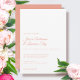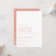 O Elegante Peony Peach Floral Minimal Wedding Invitation apresenta uma flor de pénia solteiro na parte de trás do convite, sobrepondo um fundo de bloco de cor sólida. A fonte do script é emparelhada com a tipografia serif clássica para um design limpo e elegante perfeito para uma gravata negra ou evento semissformal. Excelente para o tema do jardim Casamento da primavera.