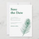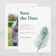 Salve a data de design mínimo O convite apresenta uma ilustração elegante de linha de pena de pavão em um tema de cor verde esmeralda. Design tipográfico moderno e limpo, este convite para Salvar a Data está pronto para você personalizar com os detalhes do seu dia especial e adicionar sua própria foto. Parte de uma variedade cada vez maior de artigos de papelaria, por favor, navegue no Emerald Green Peacock Feather Wedding Suite para ver itens correspondentes.