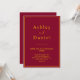 Este elegante convite de casamento de burgundy e ouro é perfeito para um casamento moderno. O simples design apresenta uma elegante caligrafia de ouro num fundo de burgundy.