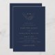 Convide amigos e família para sua cerimônia de casamento com este convite clássico e elegante de marinho e monograma de ouro.