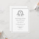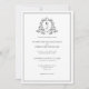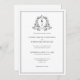 Convite formal de casamento preto e branco com uma crista elegante e clássica de monograma.