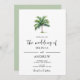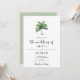 O convite é simples e minimalista, com palmeira tropical solteiro sobre fundo branco e cor suave. Se precisar de outro produto ou personalização correspondente, entre em contato comigo.