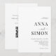 Mínimo Elegante Branca Negra-Negra Todos num Convite De Casamento. Personalize este simples convite para casamento elegante com detalhes e código de QR digitalizável para rsvp e site de casamento. Apresenta a tipografia moderna e clássica para um design mínimo elegante.