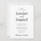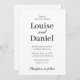 Um convite de casamento simples e moderno. Texto preto e branco em um estilo mínimo. Basta adicionar seus próprios nomes e informações personalizadas.