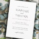 Um simples convite de casamento elegante e minimalista para o dorso e a tipografia branca com um estilo elegante e vintage florescido. Esta fonte inspira-se nas inscrições romanas do primeiro século, oferecendo um equilíbrio entre um sentimento clássico e uma estética moderna. As decorativas varridas florescem nas cartas criam um sentido de drama e elegância. Este design de convite está disponível no impressão, como download digital ou em ambos. A adição de cantos arredondados ao seu convite pode elevar o estilo e o Zazzle oferece uma variedade de tipos de estoque de cartas, de lisa, fossa, linho e outras superfícies texturizadas. Você pode usar a ferramenta design simples para explorar outras fontes, se preferir.