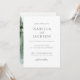 Um simples convite de casamento elegante e minimalista para as costas e tipografia branca com um estilo clássico antigo. Árvores de floresta de aquarelas suaves no verso.Disponível em impressão, como download digital, ou ambos. Os nomes são escritos em uma fonte inspirada em inscrições romanas do primeiro século, e baseada em proporções clássicas. Disponível em impressão, como download digital ou ambos.