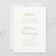 Convite para Casamento Muçulmano de Walima. Esta é uma elegante design de cartão mínima com fontes clássicas de flemisk e guião romana goudy em cor dourada sobre fundo branco. Personalize os nomes da noiva e do noivo, data e local para tornar o convite exclusivo para você. Você também pode editar o texto no outro cartão.