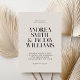 Convite de casamento moderno com tipografia quic minimalista em preto e marfim.