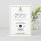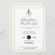 Um convite de casamento simples e elegante para o casal que está navegando entusiastas. Um design minimalista preto-e-branco com uma armação de ouro e um desenho de linha de um veleiro. Consulte produtos correspondentes na Coleção de Casamentos Mínimos de Navegação Náutica.