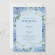 Belo convite para o casamento. Fontes maravilhosas sobre um fundo azul de coordenação feito em script azul profundo e impressão. O convite perfeito para qualquer casamento.