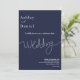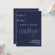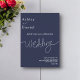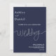 Este elegante convite de casamento azul marinho é perfeito para um casamento moderno. o simples design apresenta uma caligrafia branca elegante num fundo azul.