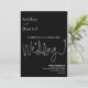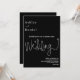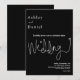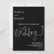 Este elegante convite de casamento preto e branco é perfeito para um casamento moderno. o simples design apresenta uma caligrafia branca elegante num fundo preto.
