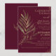 Convites Casamento Moderno Burgundy com Folha de Ouro Compr