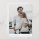 Este simples e na moda, casamento de fotos moderno, salve a data, a carta chata modelo, mostra seus nomes, data e localidade de casamento embaixo da sua foto. Você pode optar por alterar a fonte, a pontuação ou a cor usada para vários elementos de texto deste design na frente e/ou no verso. Por exemplo, você pode optar por dar uma cor diferente aos seus nomes e ao texto de detalhes na frente, ou excluir algo ou alterar um campo de texto inteiramente com uma mensagem diferente. A cor padrão dos nomes e do texto de detalhes na frente é uma elegante sombra de roxo real. A forma padrão é cantos arredondados, mas cantos nítidos também funcionam maravilhosamente com este design, então tente ambos os modos de edição e veja quais são as suas capas! No verso, escolhemos uma ordem atípica para a informação, colocando o texto "Salvar a Data" depois do texto "para o casamento de", que lhe dá um charme menos percorrido. Você pode alterar isso alterando o texto em cada um desses campos de texto e inserindo manualmente a peça que deseja colocar na ordem que deseja mostrar. Escolhemos uma cor de fundo na parte de trás chamada Fumaça Branca, é uma cinza muito clara que é maioritariamente branca. Você pode mudar isso facilmente selecionando uma das cores básicas nas ferramentas de edição, inserindo outro número de cor no lugar da nossa, se você tiver uma matiz específica em sua pesquisa, ou olhando para a ferramenta do espectro de cores e escolhendo algo à vista. Esperamos que você goste de experimentar com este casamento simples, salve a data convidando modelo e faça dele exclusivamente seu com as ferramentas intuitivas de design, sua foto favorita e sua inspiração. Temos outras variações deste design em nossa loja, incluindo um design vertical semelhante com fronteiras, e também uma versão horizontal, juntamente com uma seleção de outros cartões salve a data modernos minimalistas em vários formatos, por isso, por favor, olhem!