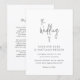 Convite de casamento elegante com um design simples com "o casamento de" em uma fonte manuscrita moderna e os detalhes do seu evento em fontes serif clássicas.