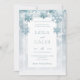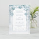 Esta bela design apresenta um fundo azul macio e poeirento com flocos de neve suaves e azuis. É parte da coleção de cartas de Dusty Blue Snowflake Modern Wedding Suite criada pela imprensa simplesmente farmácia.