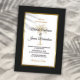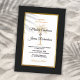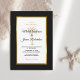 Convide seus hóspedes para ajudá-lo a celebrar seu dia especial com este convite elegante que inclui textos modernos, preto e dourado, incluindo palmeiras artísticas e moldura de ouro metálico na frente do cartão. Um fundo preto está na frente e atrás.