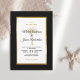 Convide seus hóspedes para ajudá-lo a celebrar seu dia especial com este convite elegante que inclui textos modernos, preto e dourado, incluindo palmeiras artísticas e moldura de ouro metálico na frente do cartão. Um fundo preto está na frente e atrás.